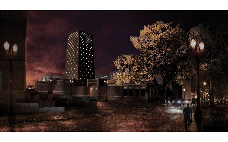 While death and heritage all used to be integral parts of all cultures’ daily routines and habits, physical space in the modern city, and the ‘memorial-parks’ available on the outskirts of urban cores, have played a part in the crowding out of remembrance from our busy lives. This project explores the possibilities available to reintroduce this presence to the American City, as something that binds our culture together through the principles of living memory and common heritage.
